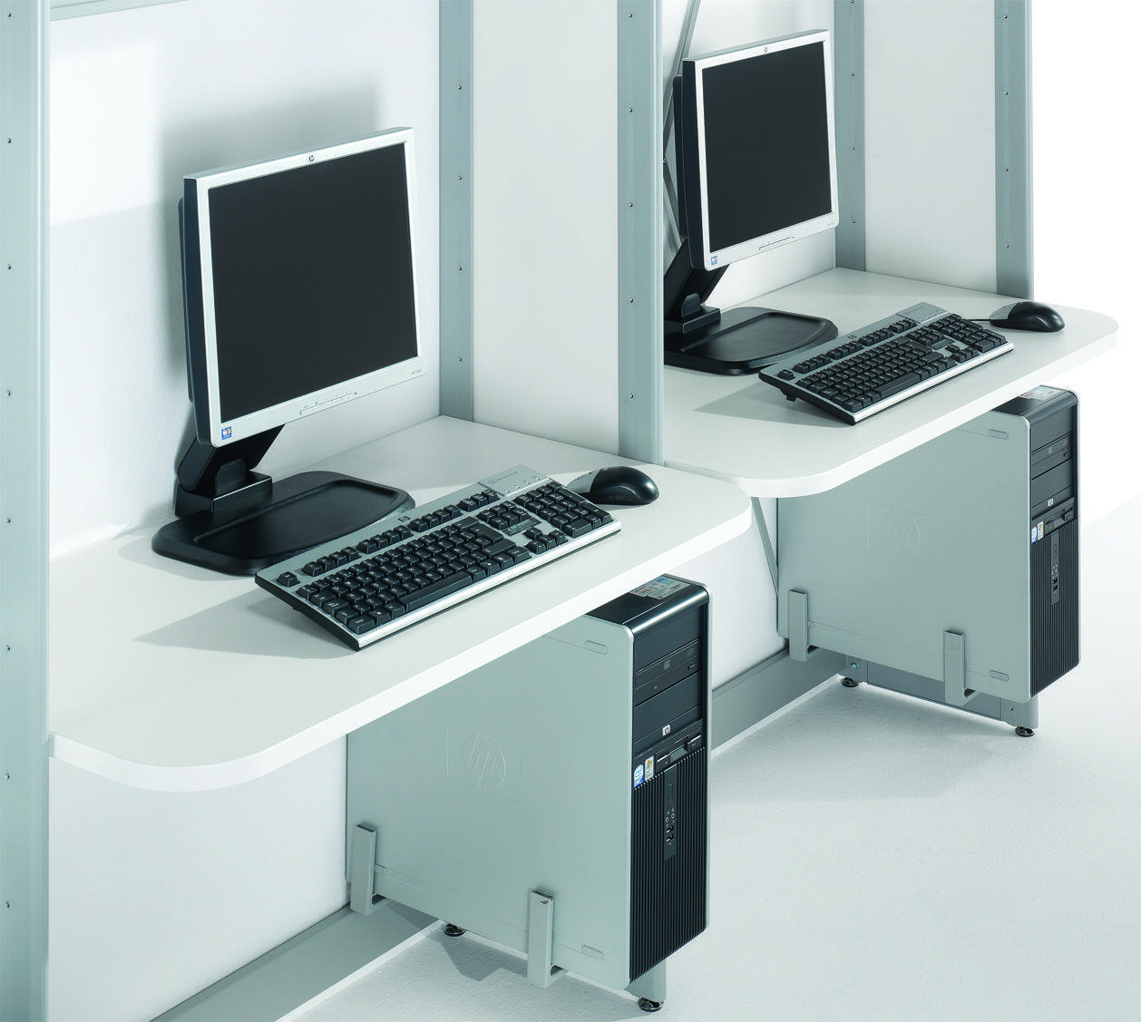 cualquier altura de la estantería (fijados en el perfil vertical)