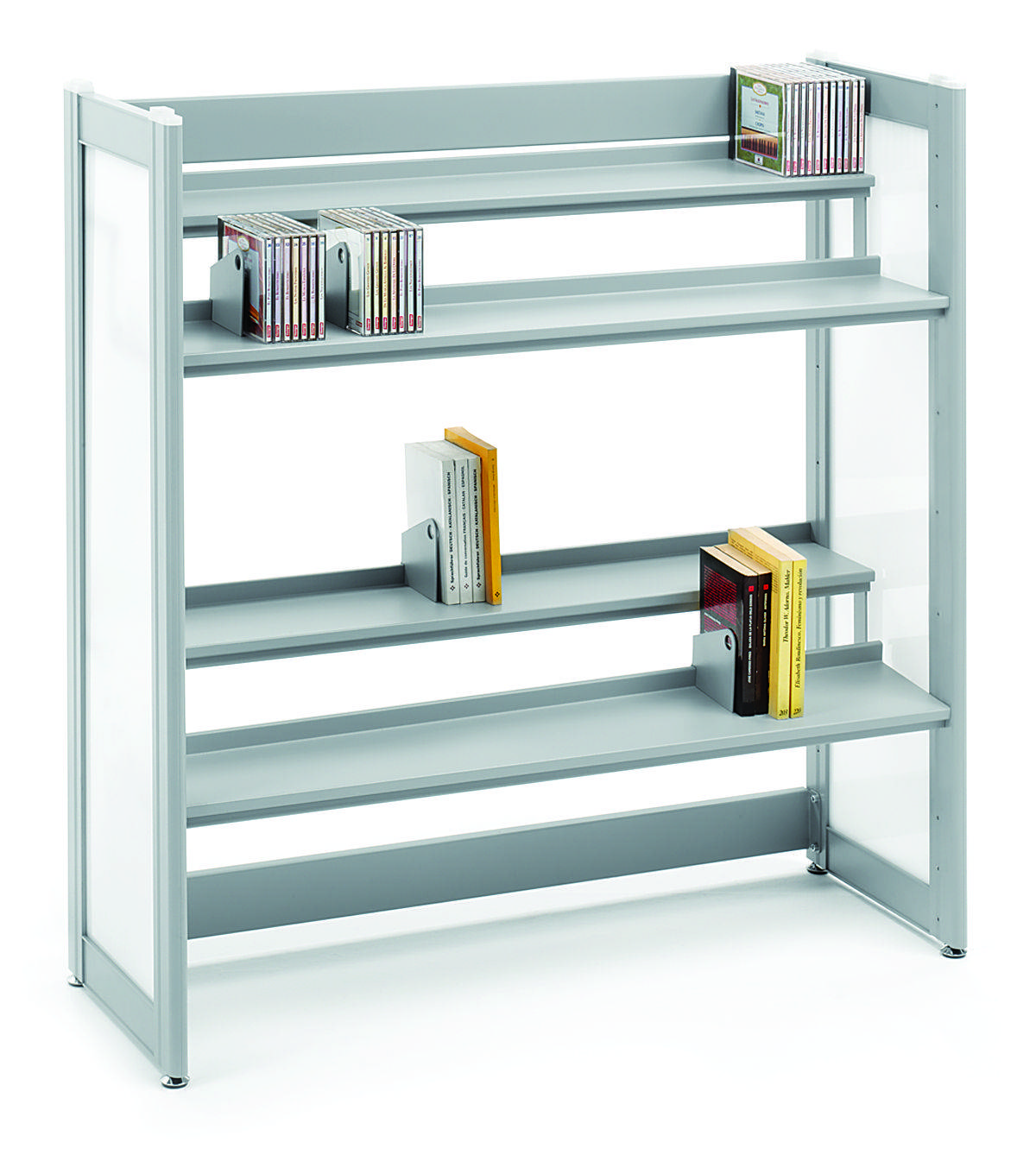  Estantes rectos metálicos con tope, estantes inclinados o revisteros, estante doble