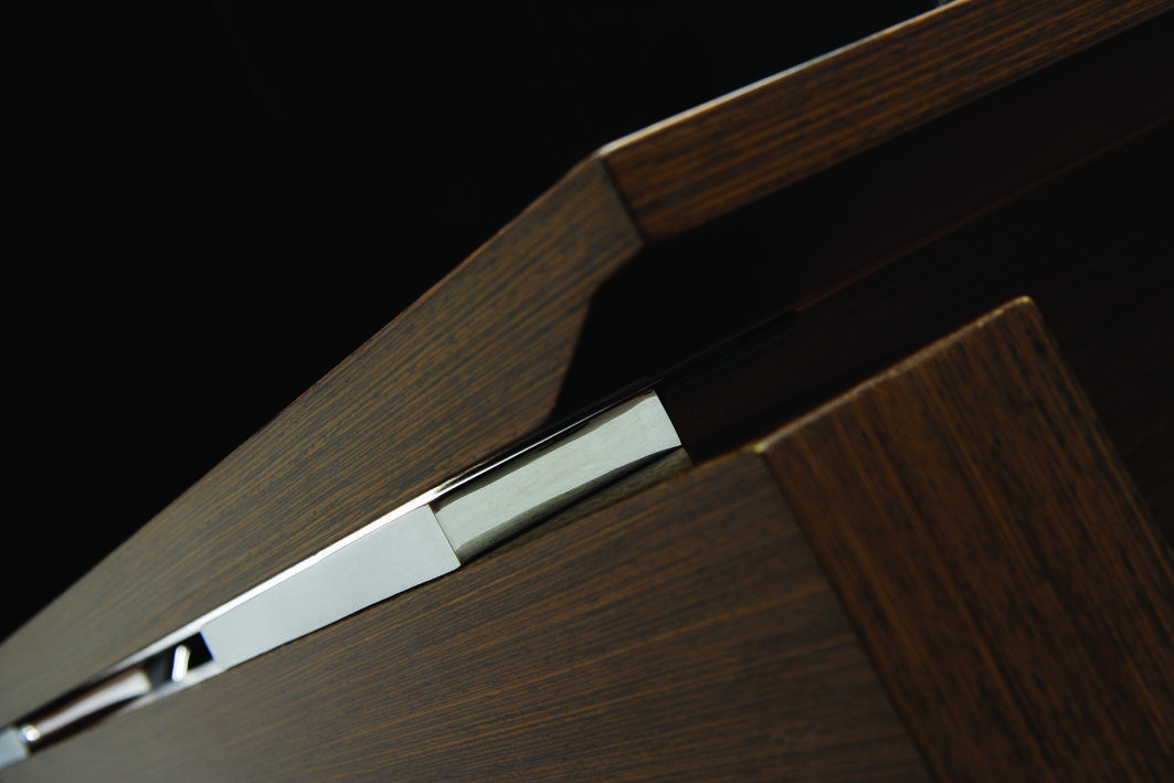 · Cantos de mesa y ala rebajados y postformados, canteados en chapa de madera barnizada.