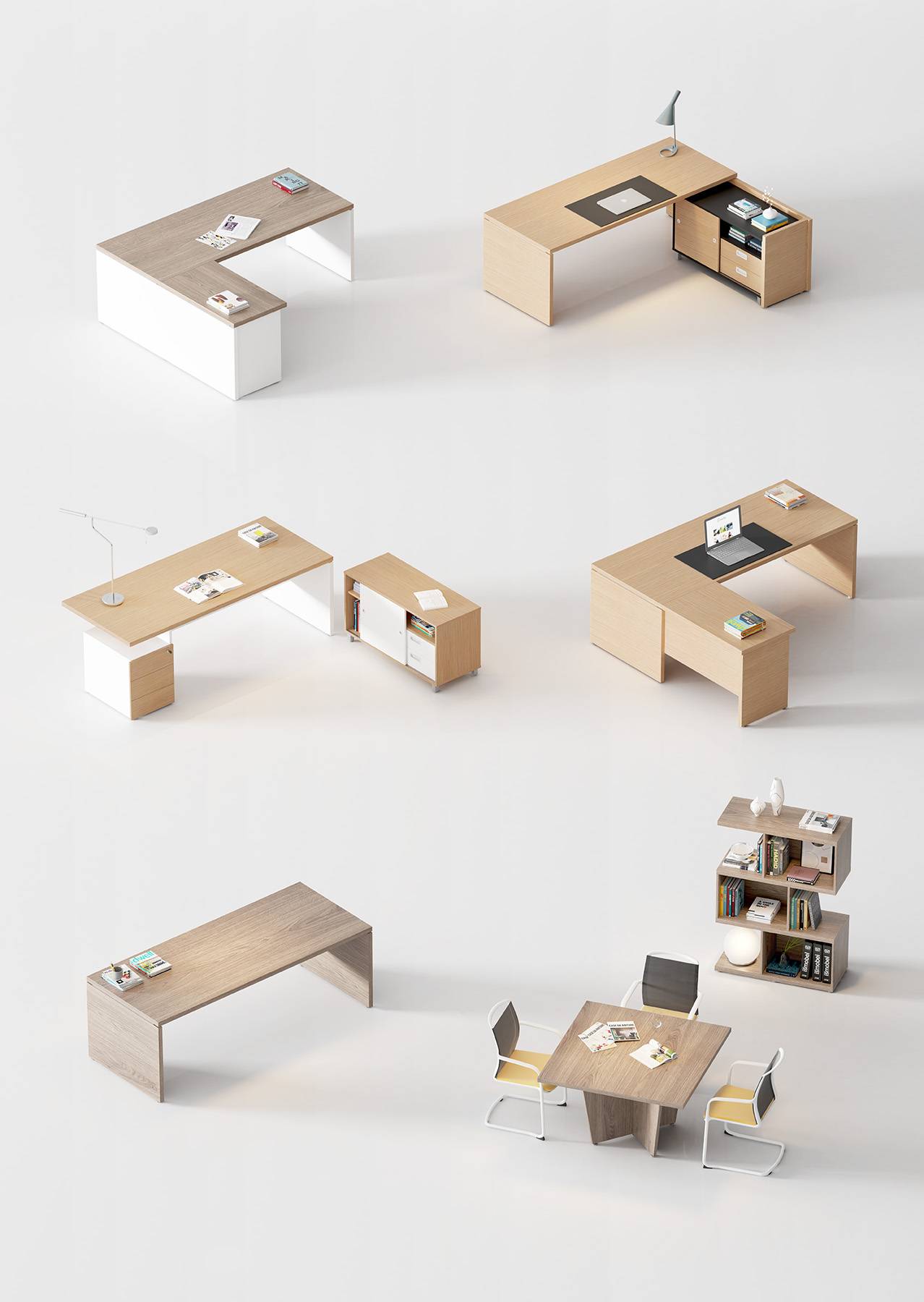  Existen alas de mesa individuales o integradas en mesa, así como cajoneras o credenzas integrados dentro