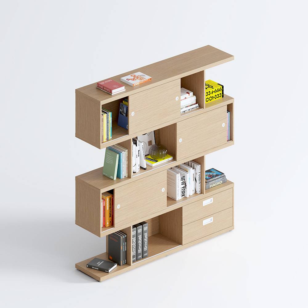 Geometrías que resuelven las funcionalidades que necesitas, objetos, libros, tus cosas de cada día que acaban encontrando su sitio, su espacio.