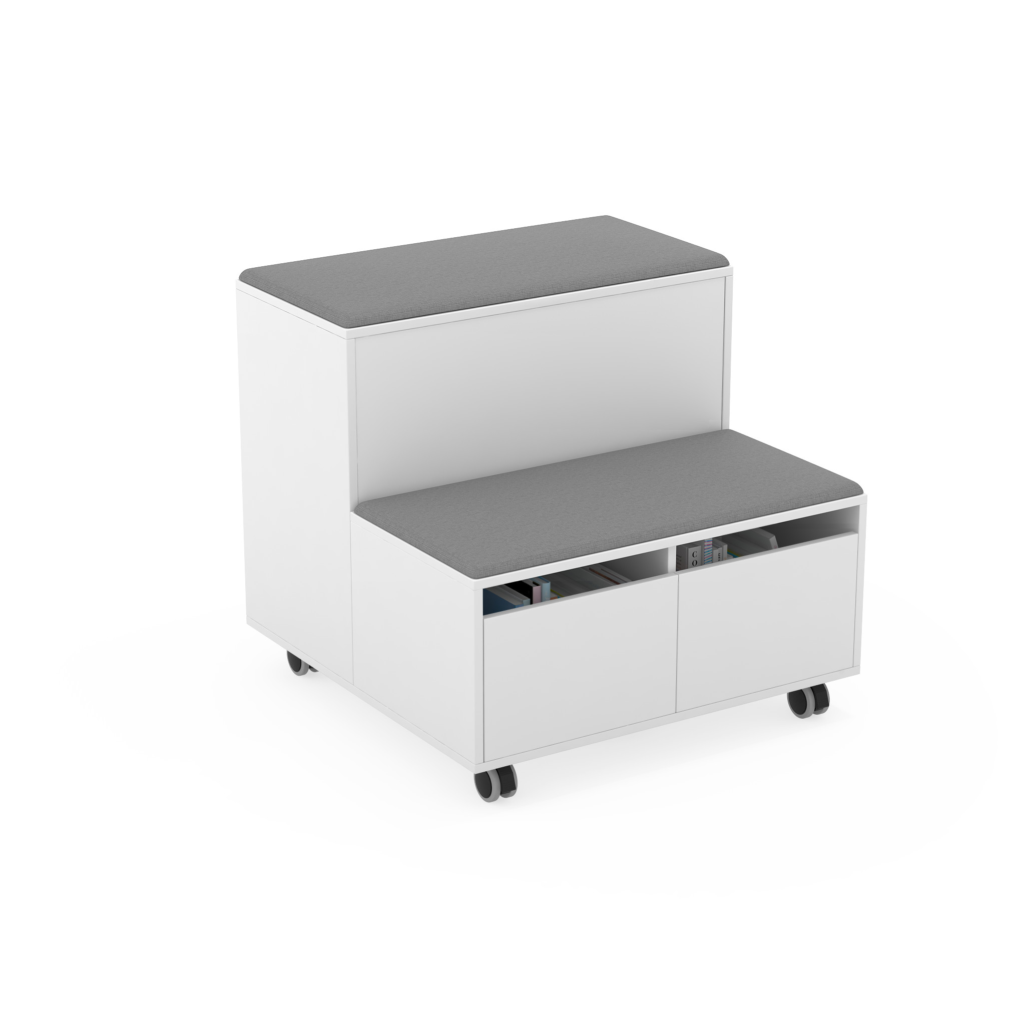 Grada modular con ruedas y estantería que te permite crear diferentes espacios de aprendizaje y dividir áreas.