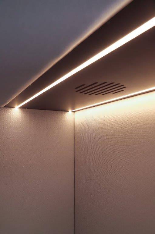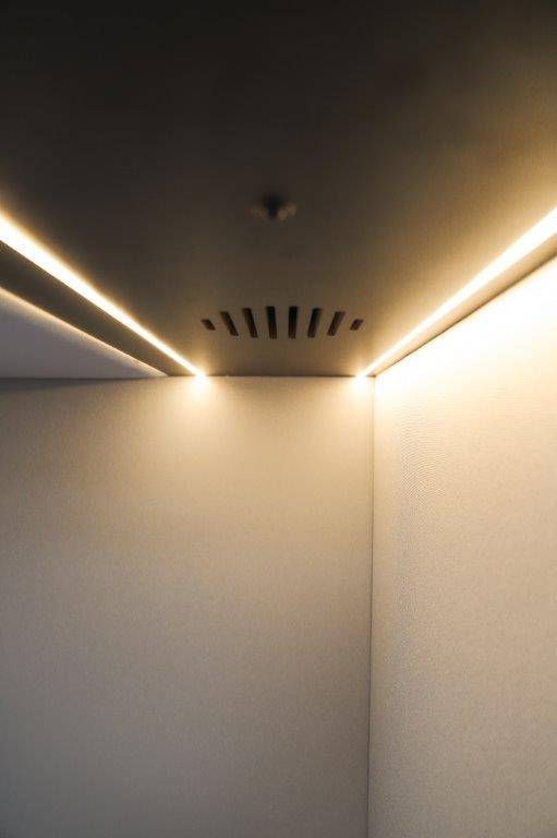  Dispone de 3 entradas de aire ranuradas y dispone en el techo, sobre la mesa, de doble tira de LED de