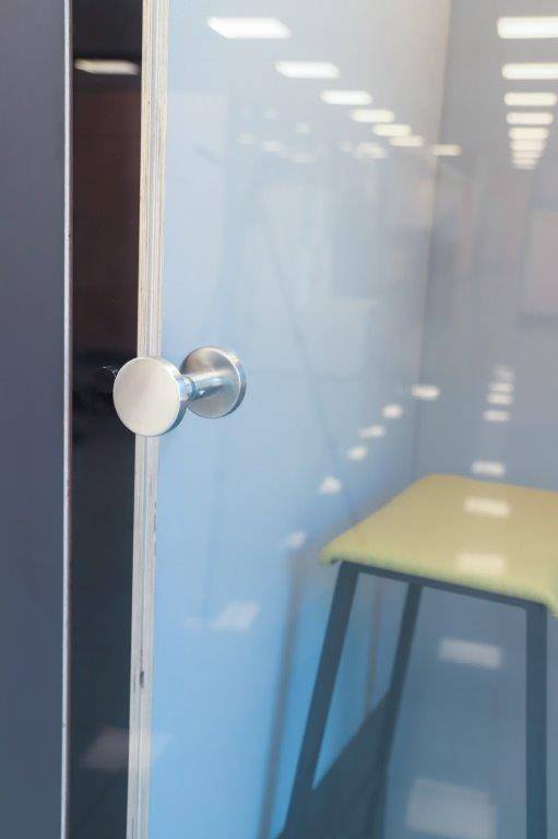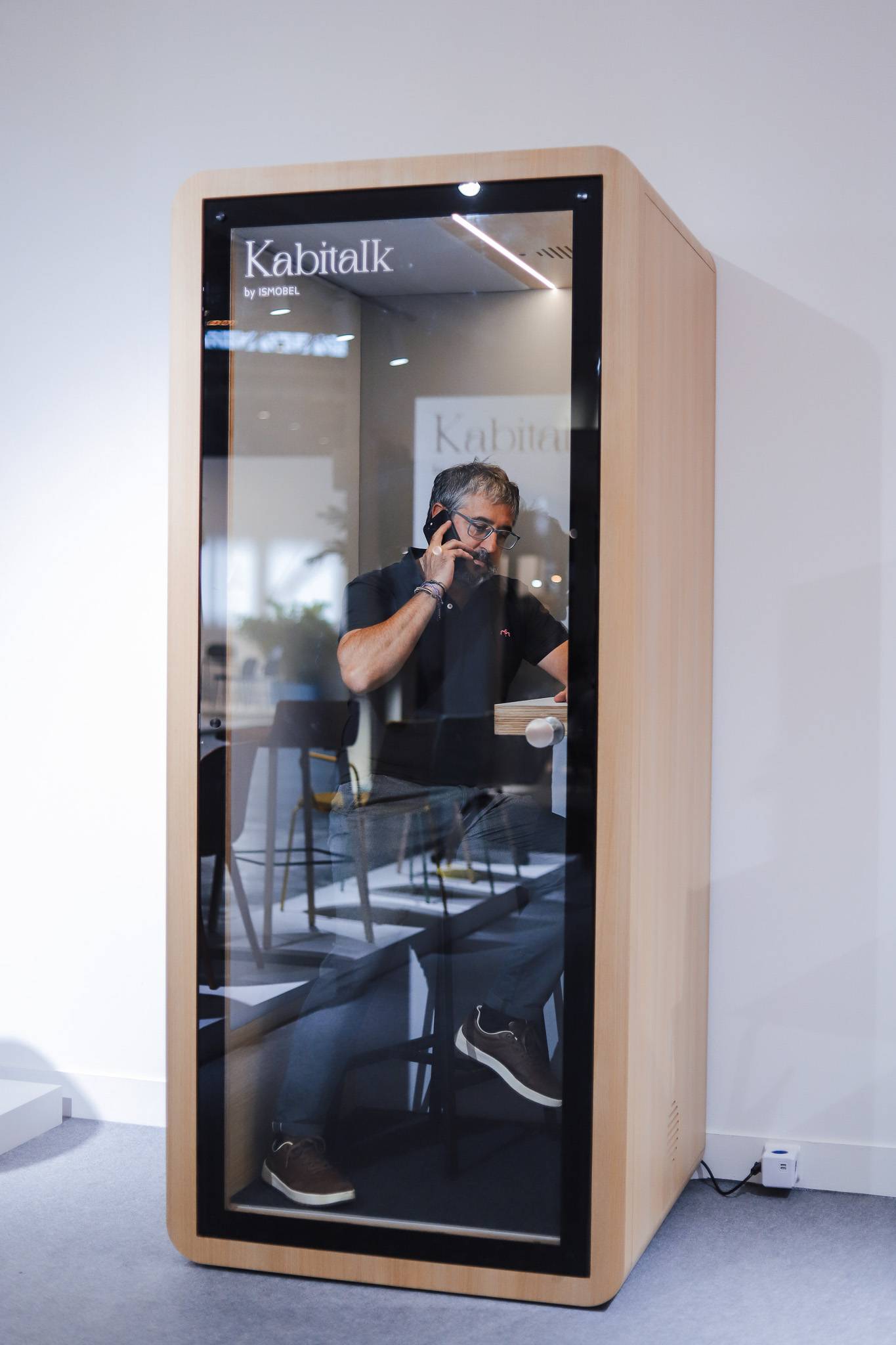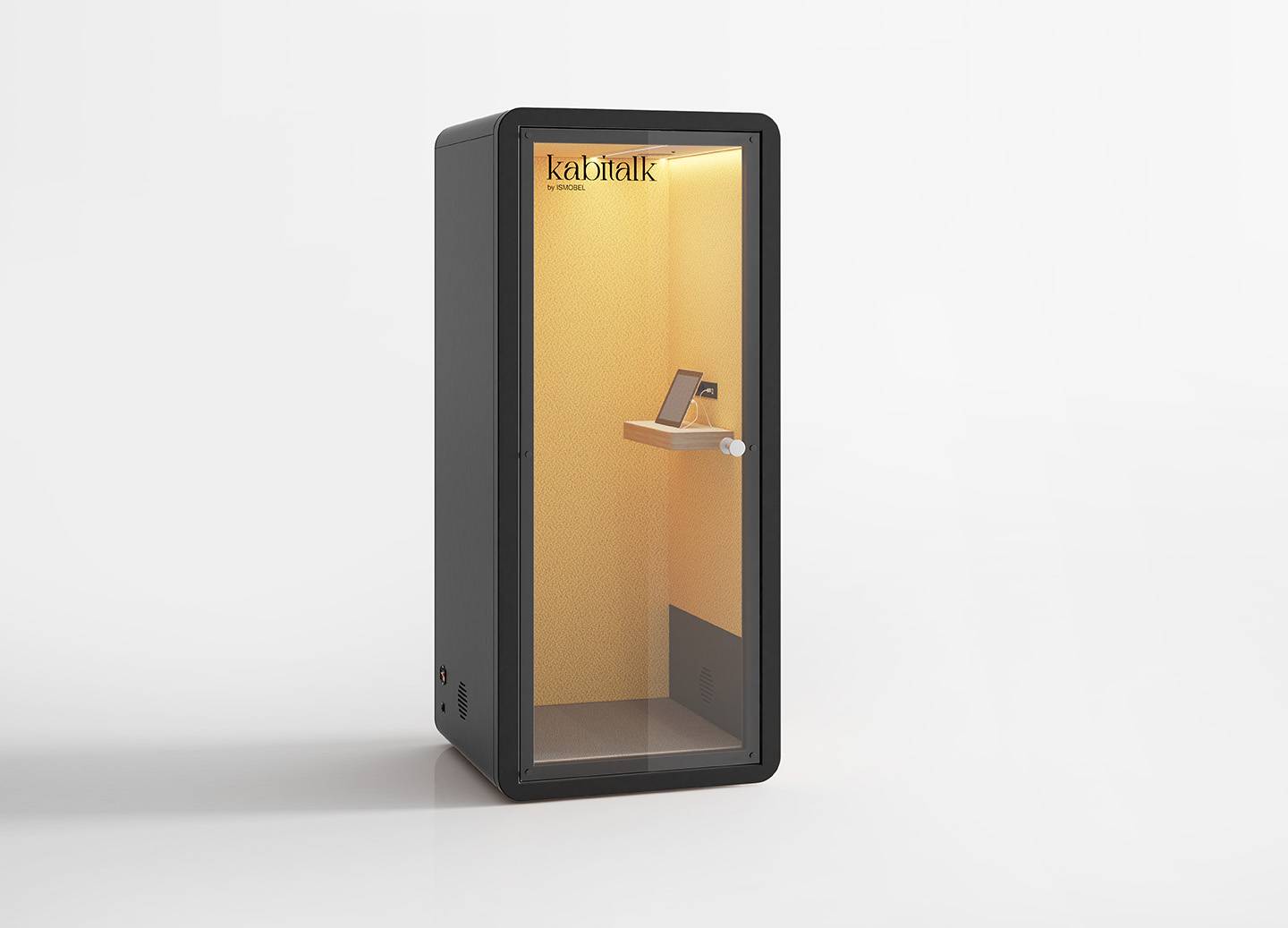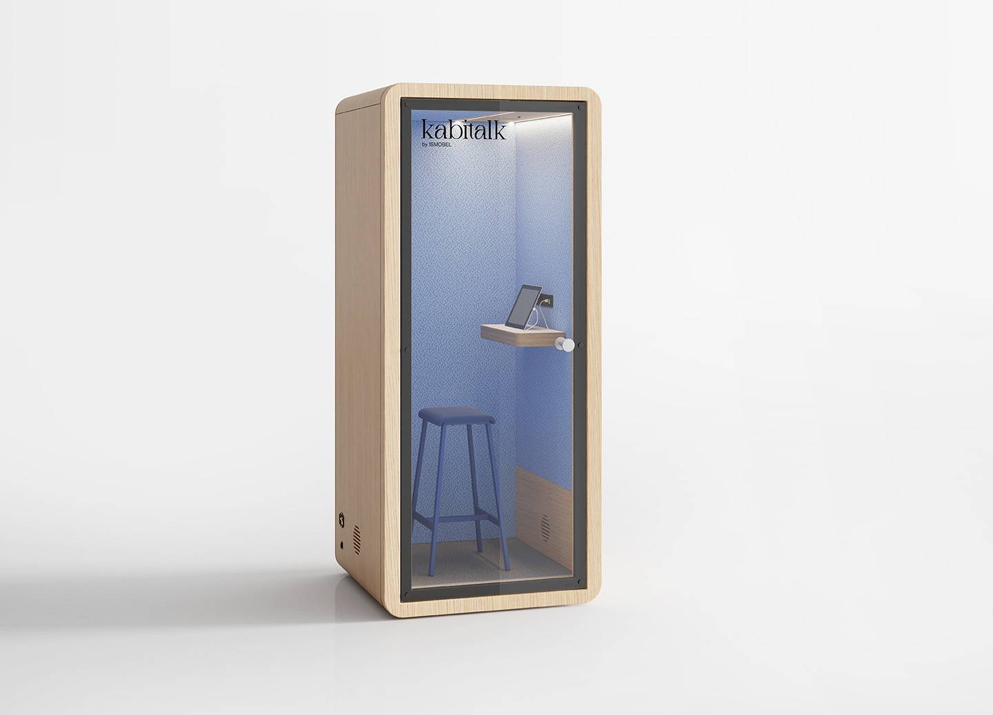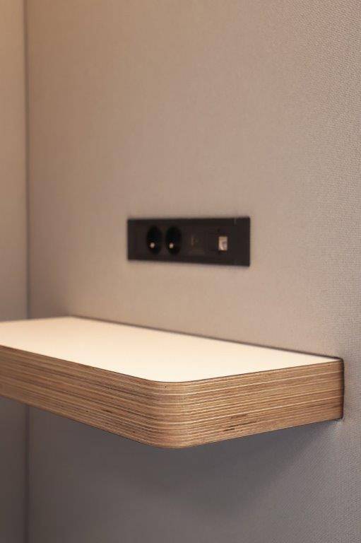 Cabinas de oficina para una concentración óptima, con una puerta de cristal que asegura aislamiento acústico sin sacrificar la visibilidad. Equipadas con iluminación LED, mesa extra ancha y toma de corriente, se adaptan perfectamente a cualquier entorno gracias a su diseño sencillo.