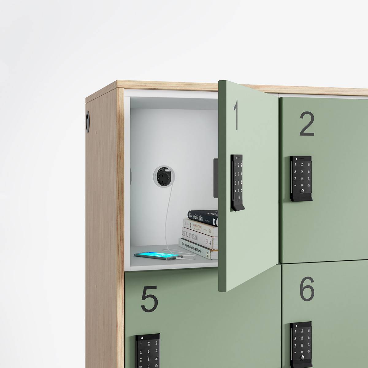 disponibles en acabado negro o blanco (integrados dentro de la taquilla y ocultos por las tapas y