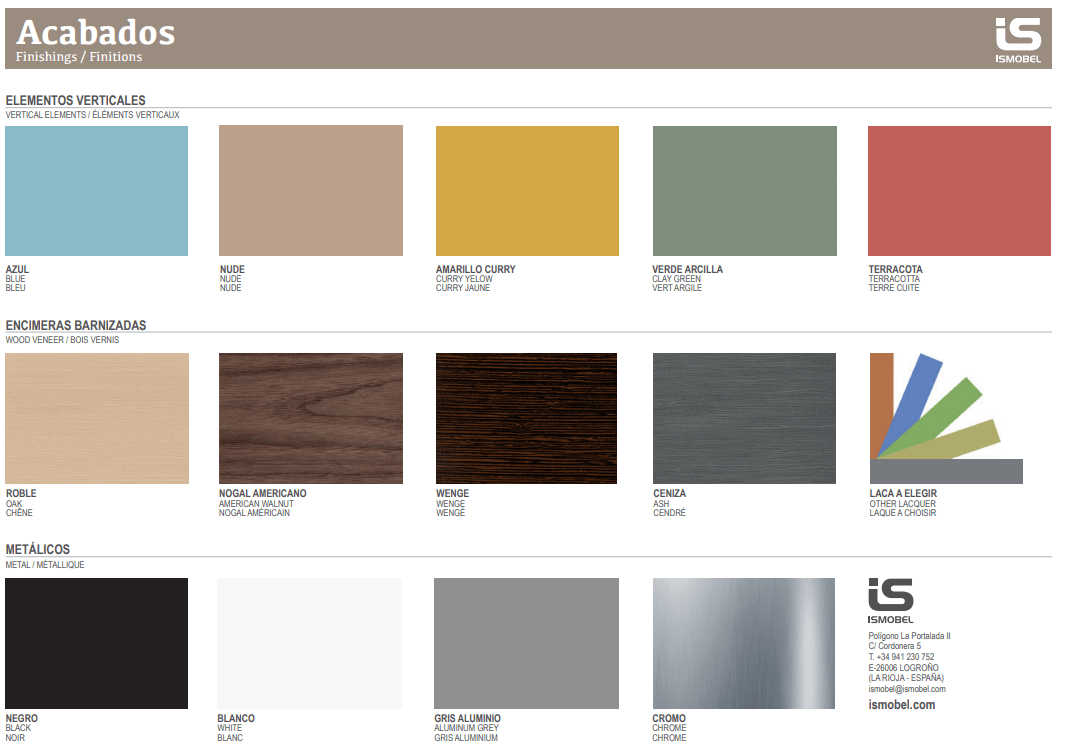 La serie Delfos puede fabricarse en los siguientes colores: