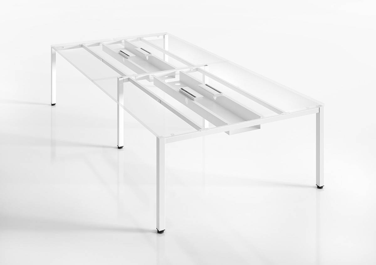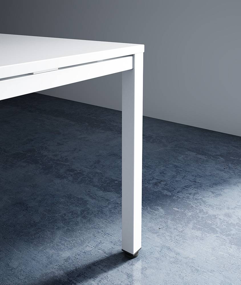Las mesas de juntas utilizan una estructura de pie peana metálico capaz de garantizar la sustentación del