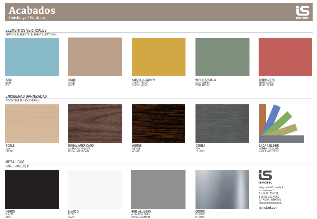 Acabado del plano de trabajo a elegir entre los acabados disponibles de ISMOBEL.