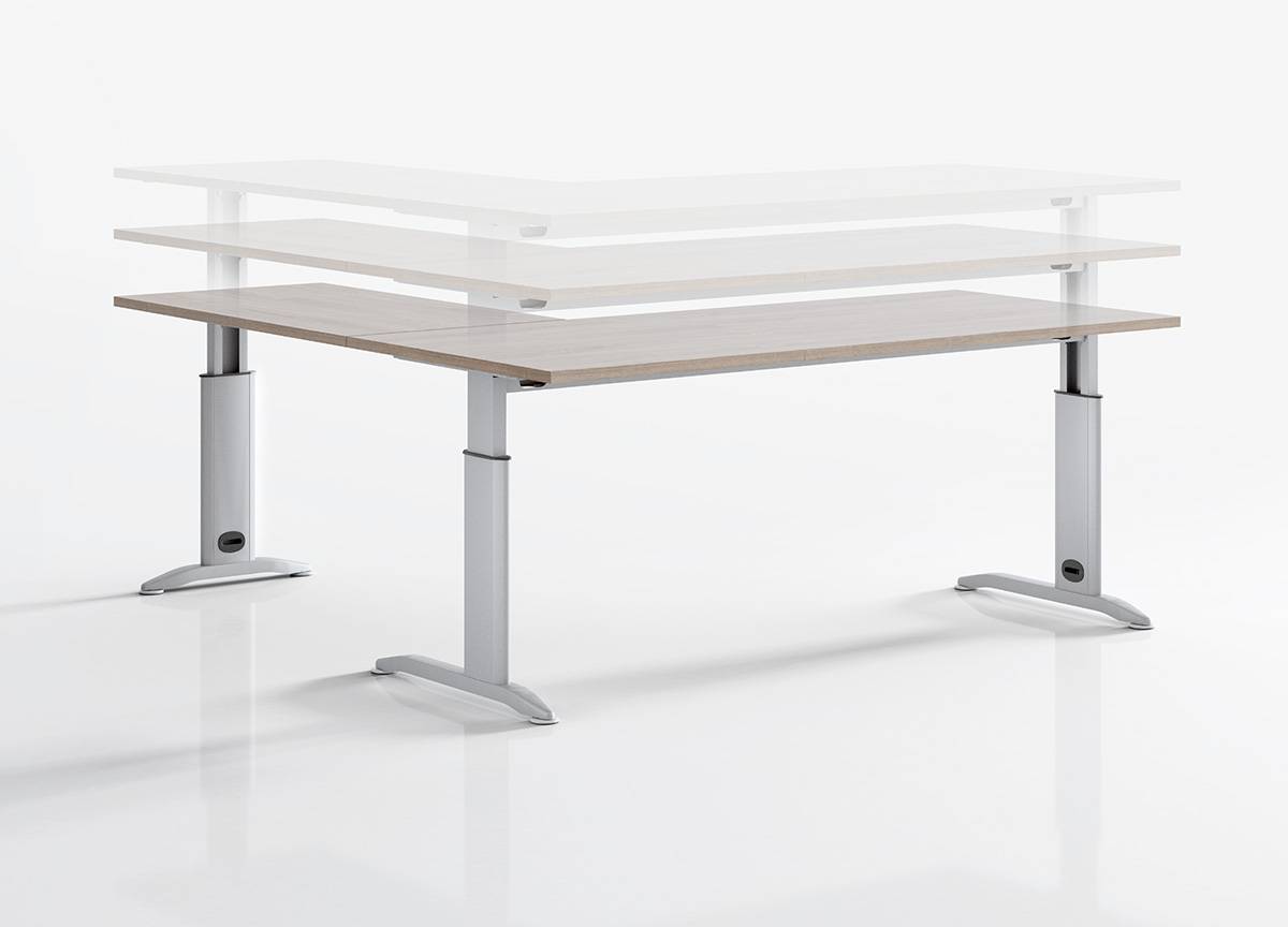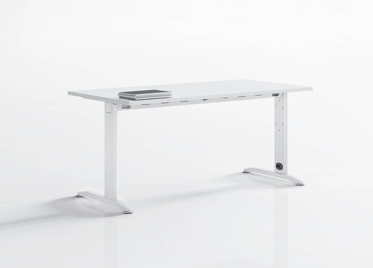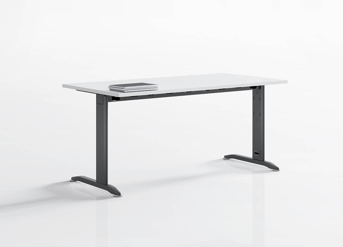Mesas recta de 2 patas metálicas en forma de L faldón de melamina con posibilidad de incorporar alas de