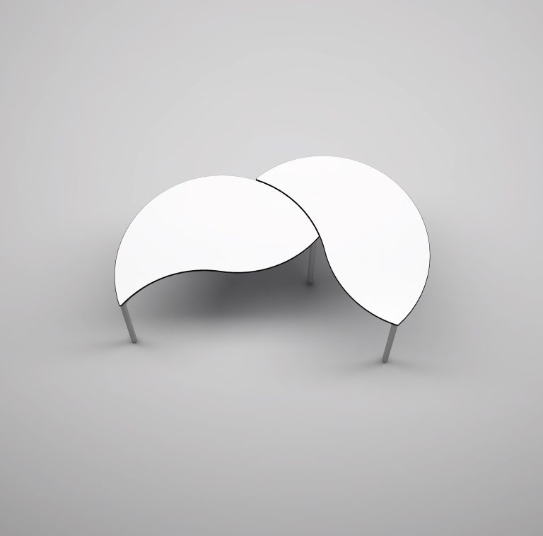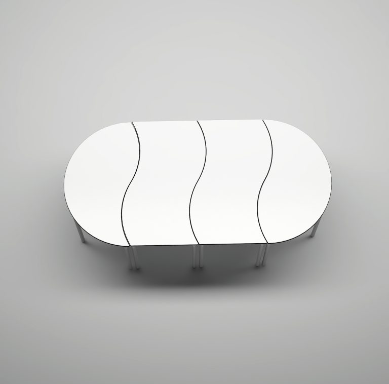 Mesa para equipar aulas de aprendizaje cooperativo que permite distintas combinaciones para trabajar en grupo o individualmente.