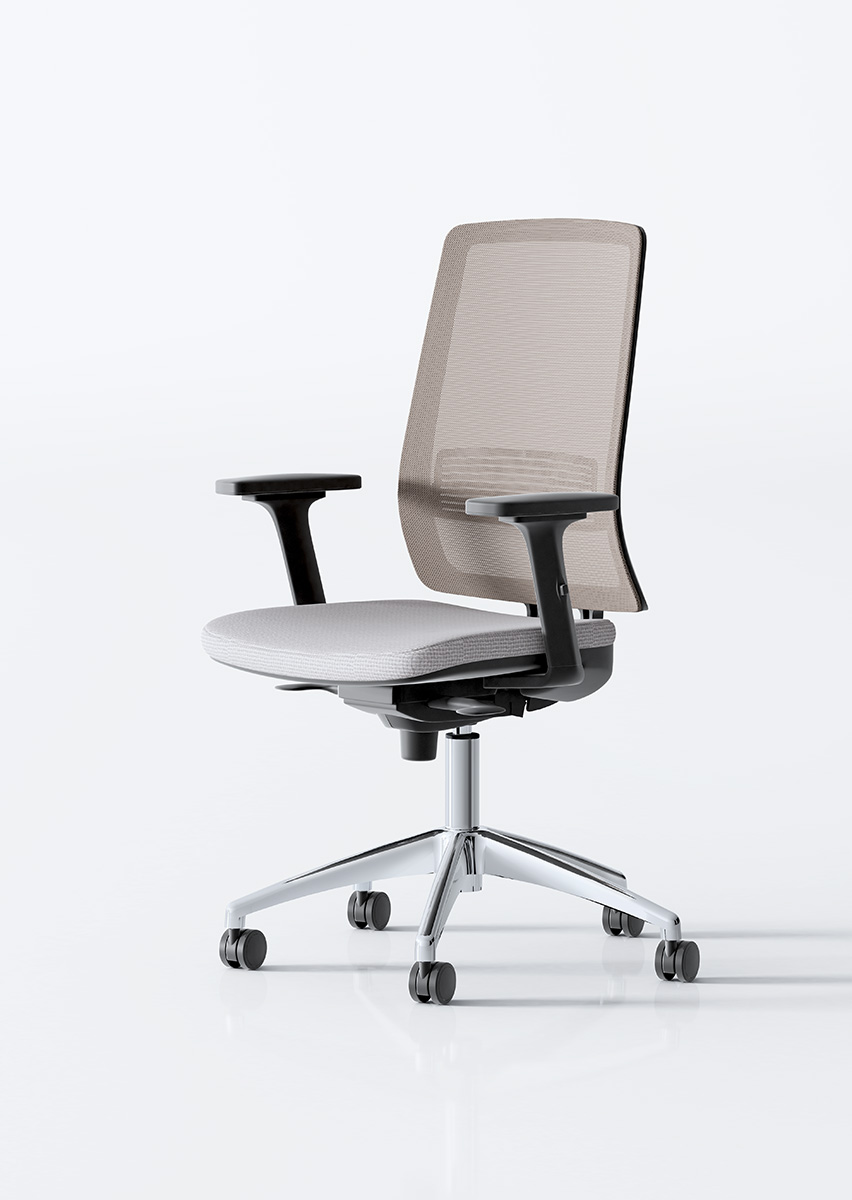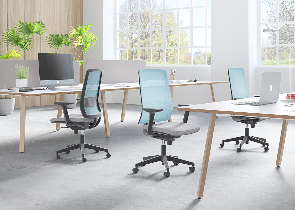 Silla ergonómica con respaldo de malla técnica diseñada para uso intensivo.