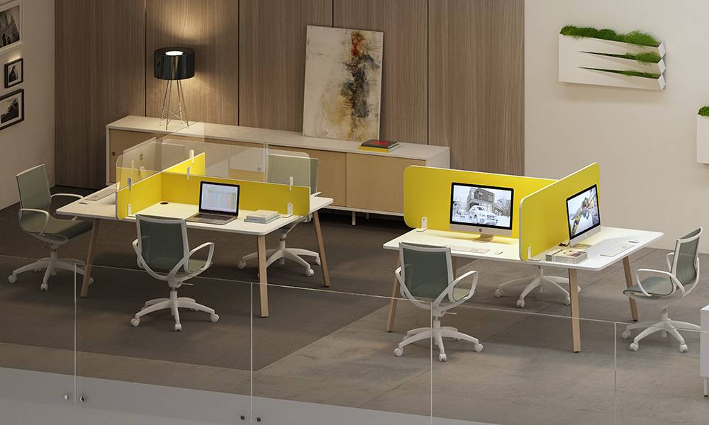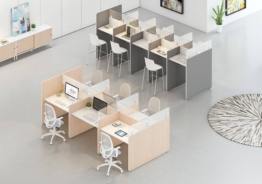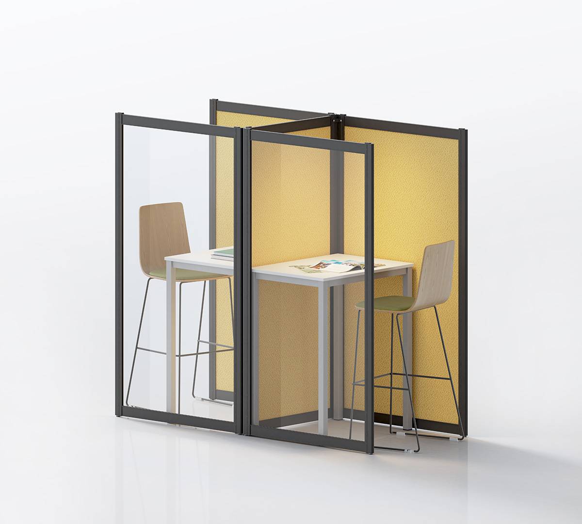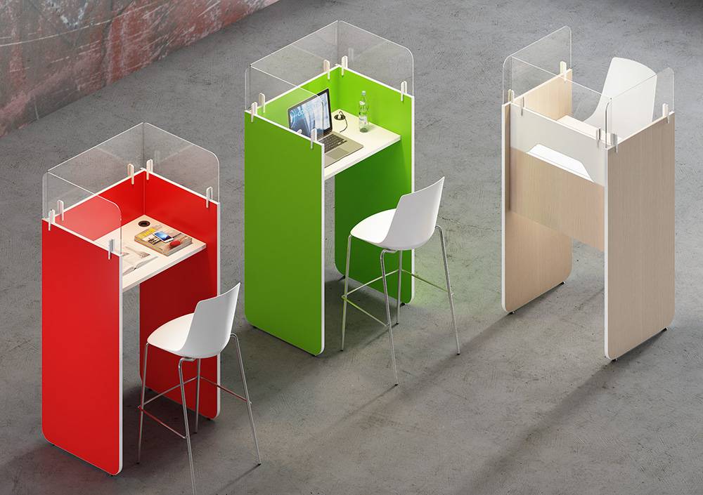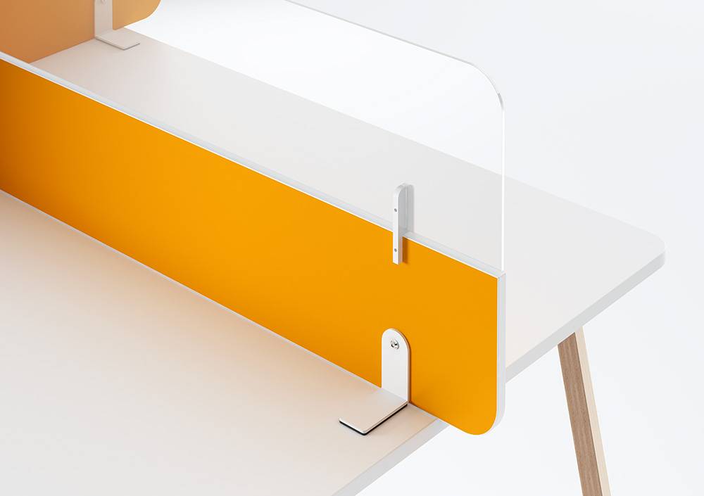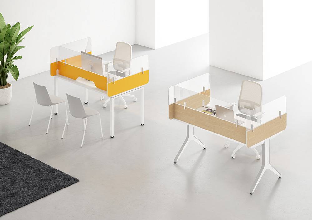 Composiciones personalizables y perfectamente integradas en el entorno. Elementos separadores que se anclan perfectamente a los diferentes modelos de mesas.